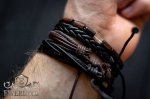 - Three leather bracelets with adjustable cord and a wooden bracelet.
