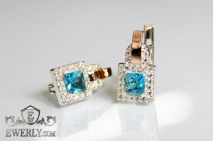 Серебряные серьги с золотыми вставками и фианитами (цвет шампань)