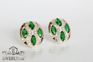 Серёжки из серебра с золотом для женщин (серебро 925 пробы, золото 375 пробы) с камнями - фианитами синего цвета.