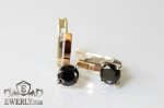 Женские серьги из серебра с золотом (серебро 925 пробы, золото 375 пробы) с фианитами чёрного цвета.