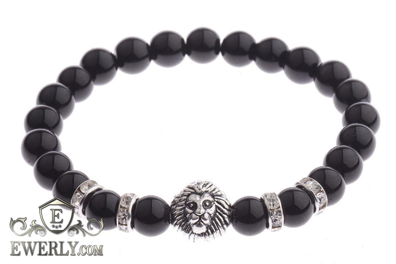 Каменный браслет чёрный для мужчины 123011MM