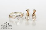 Набор из серебряных серёжек и кольца с сердцем (камень белого цвета)