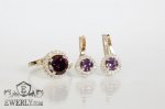 Женские серебряное кольцо и серьги с золотыми вставками и камнями - фианитами цвета-аметист.