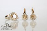 Женские серебряное кольцо и серьги с золотыми вставками и камнями - фианитами цвета-шампань.