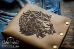 Полностью выполнен из натуральной кожи и металлических заклепок. Эксклюзивное категорически мужское изделие ручной работы, имеет эффект потёртости и лёгкой небрежности с изображением ЛЬВА. Рисунок нанесён на кожу с помощью лазера (лазерная гравировка). Изготовлен в ограниченном выпуске.
