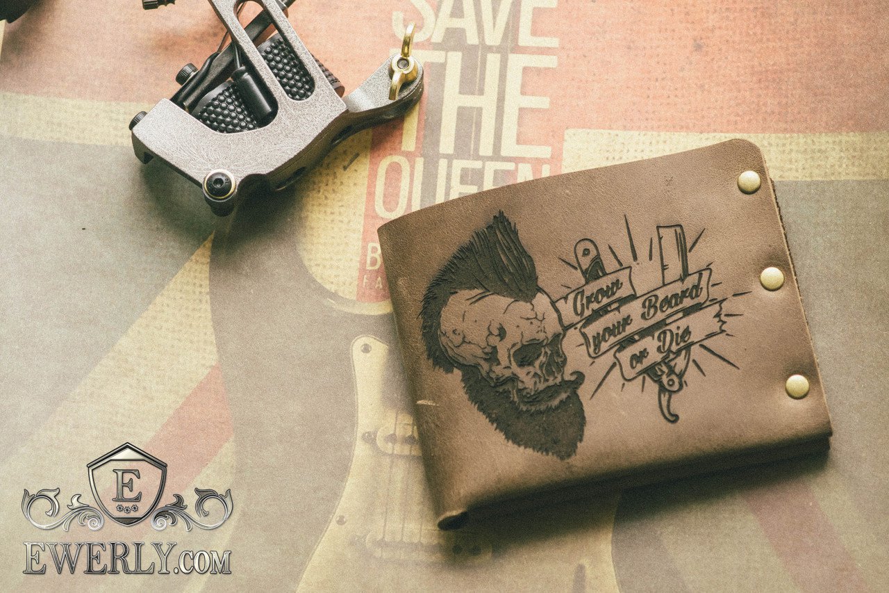 Полностью выполнен из натуральной кожи и металлических заклепок. Эксклюзивное изделие ручной работы, имеет эффект потёртости и лёгкой небрежности. Рисунок нанесён на кожу с помощью лазера (лазерная гравировка). Изготовлен в ограниченном выпуске.