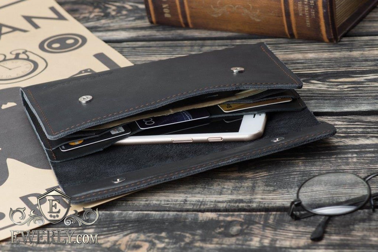 Мужское портмоне из натуральной кожи - клатч черный 11022WN