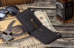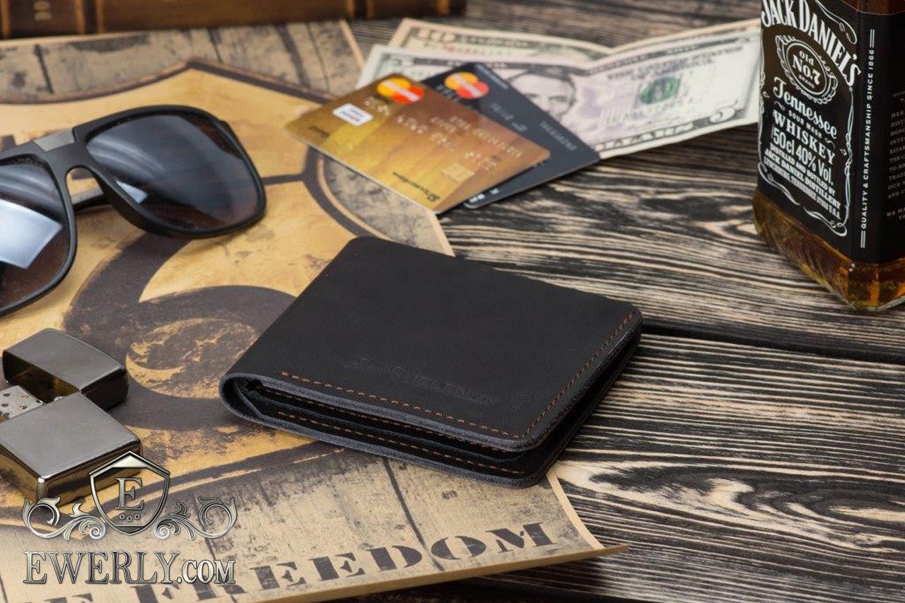 Прочный мужской бумажник из кожи с двумя отделами под банковские карты и визитки, а также один раздел для бумажных денег.