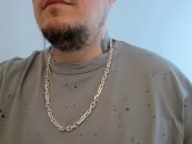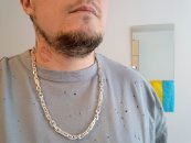 Повновісний ланцюжок.Дуже популярне серед чоловіків «плетіння Рамзес», також на просторах інтернету дане плетіння можна побачити під назвою «Подвійний зворотний Бісмарк». Особливо чоловічу увагу привертають товсті срібні ланцюжки з «Подвійного зворотного бісмарка» з розмірами близькими до розмірів на фото. І тим не менше, якщо такий ланцюжок особисто для Вас виглядає на шиї дуже громіздким або навпаки замалим, то Ви без особливих зусиль можете відкоригувати практично будь-який її параметр під свій смак, в тому числі є можливість вибрати як з чорнінням, так і без чорніння або ж з родіюванням.