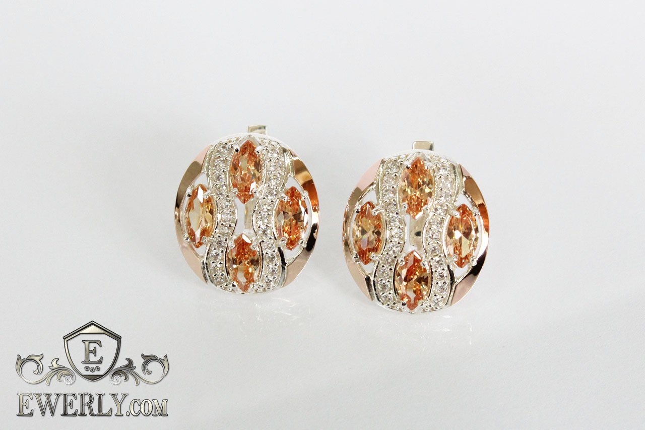 Сережки зі срібла 925 проби для жінок з камінням (колір-шампань)